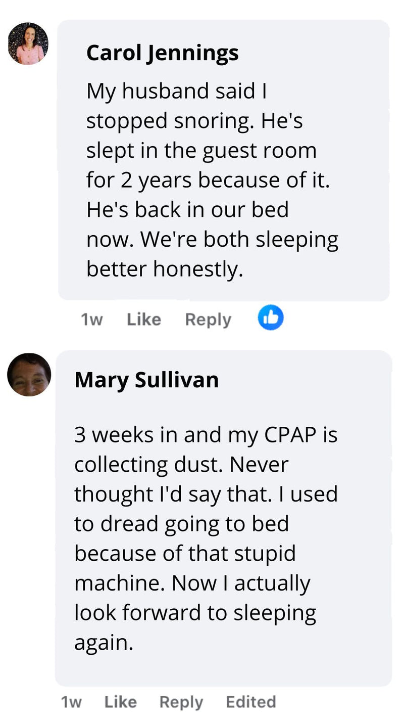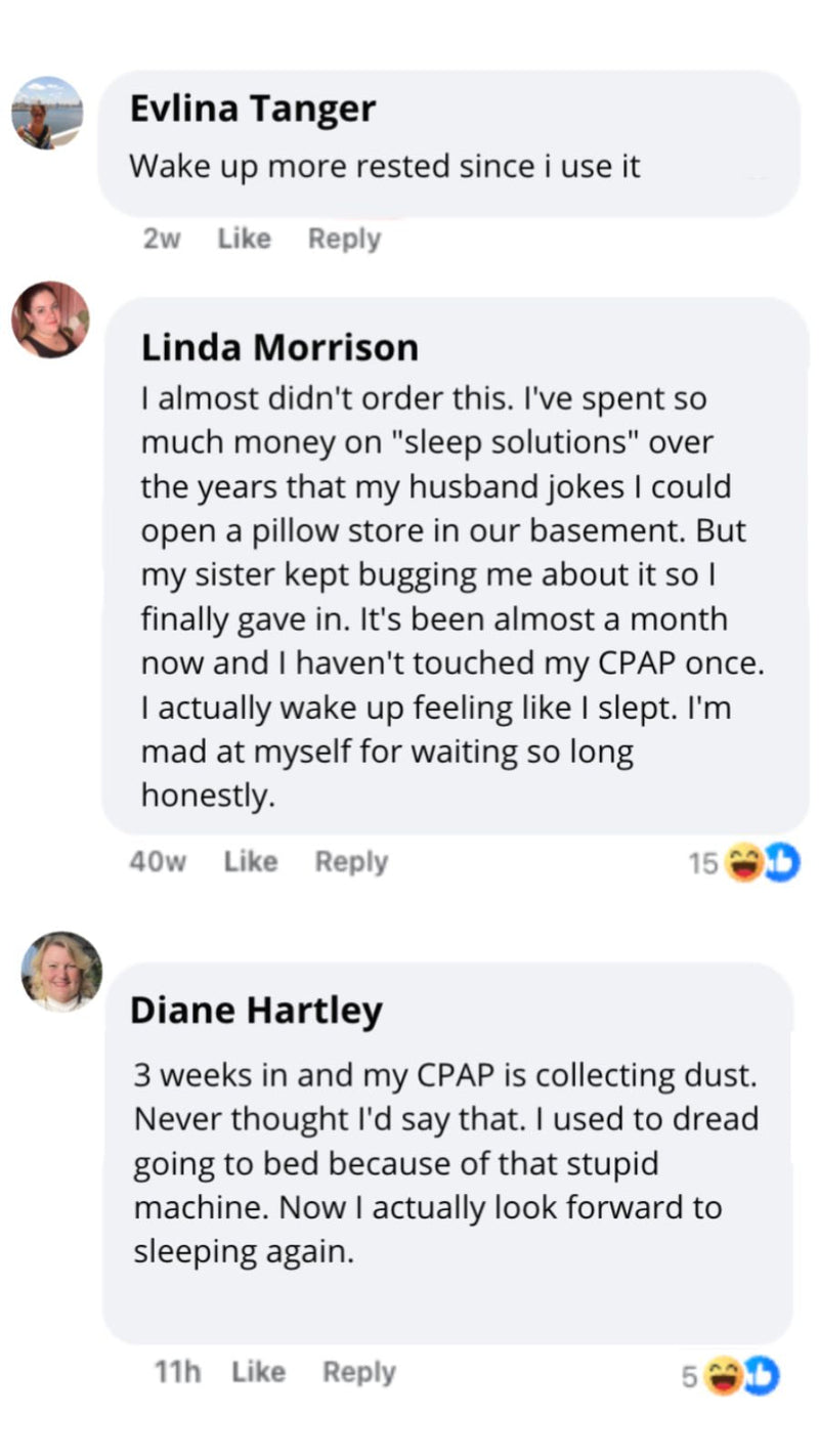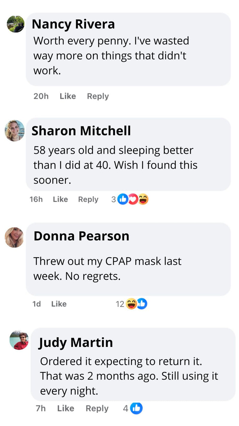 "My Doctor Never Mentioned This Option""I trusted my doctor and stuck with CPAP for 3 years. Miserable years. I felt guilty even trying something he didn't prescribe. But I couldn't ignore the results — deeper sleep, more energy, no more machine noise. Sometimes the best solutions aren't in a prescription pad."— Patricia W.